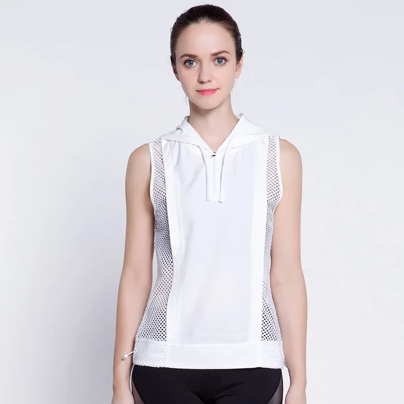New Style with Large Hole Side Edge Gauze Joint Running Coat Hooded Waist Hugging Yoga Fitness Tops