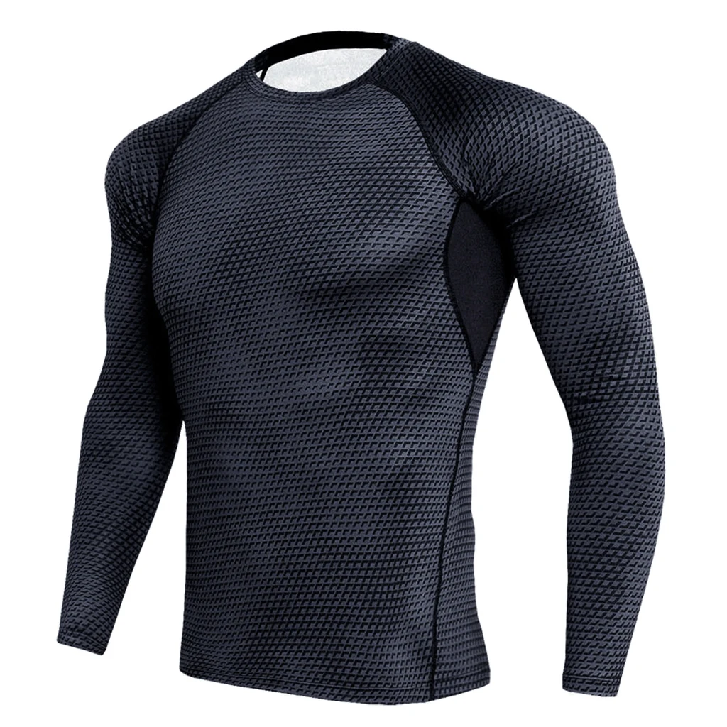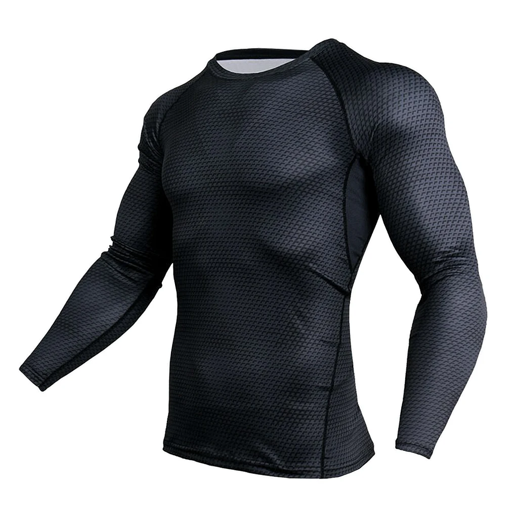 Men Black Long Sleeves Tights Sports Shirt Fitness Compression Tops S-3XL