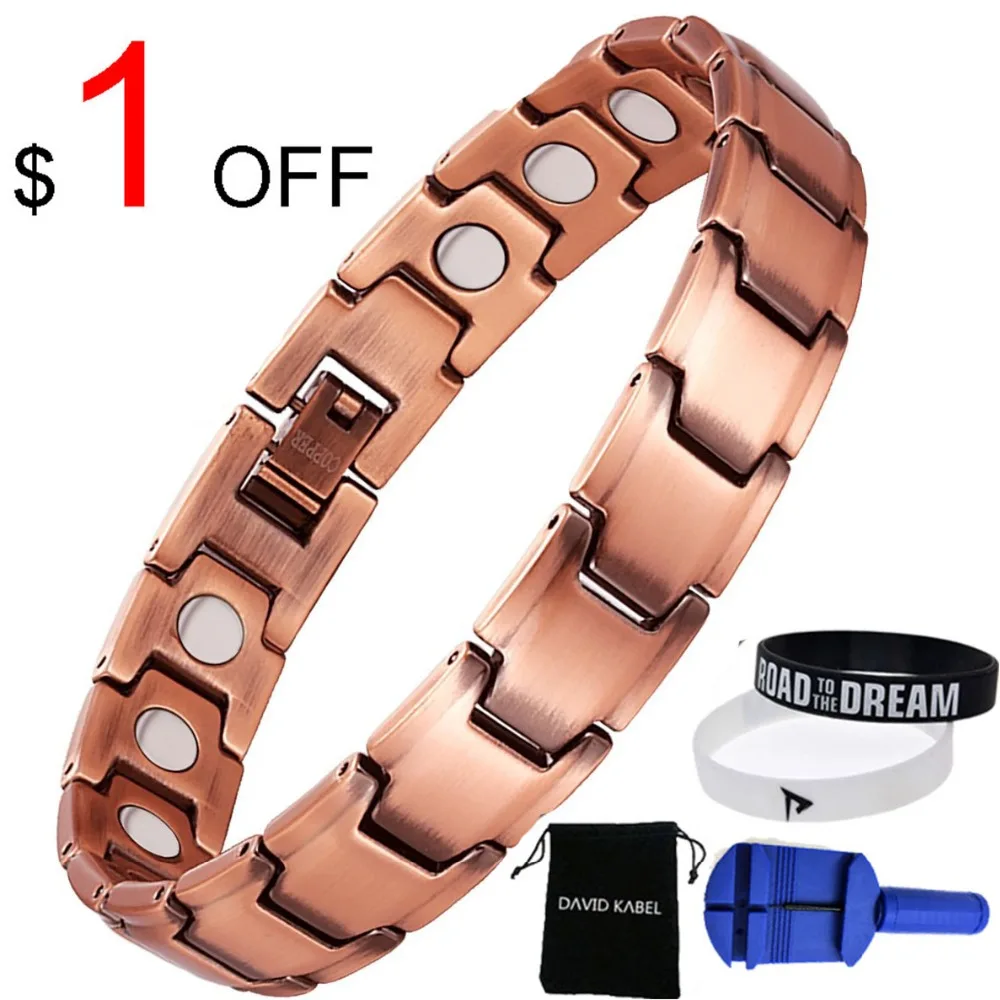 Best Quality Men's Copper Hologram Germanium Magnetic Therapy Bracelets healing 12mm Tourmaline Energy Balance B